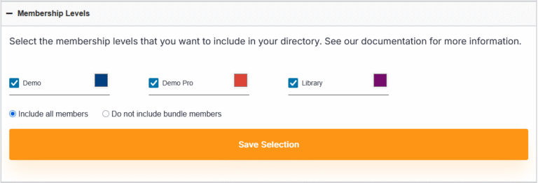 Once you have saved your WildApricot API key, you will see all the levels setup in your account. Check the box next to the levels you want to include in the directory.